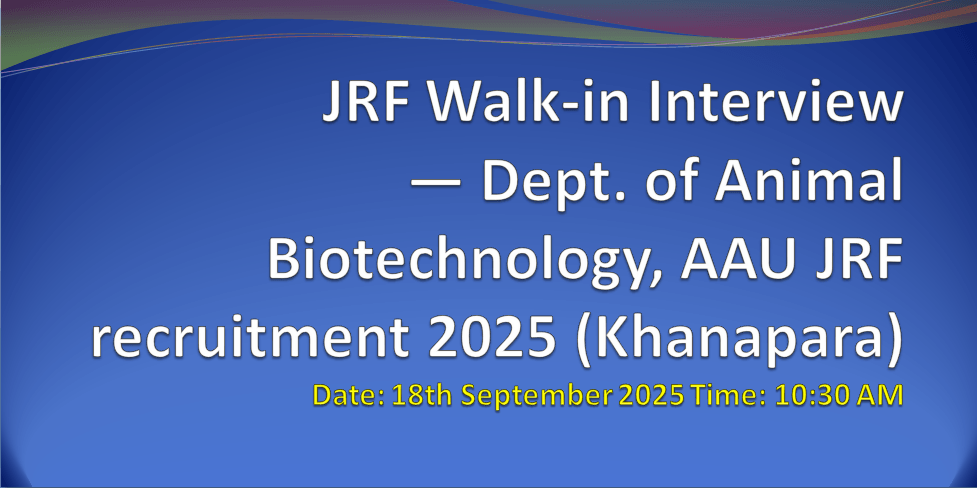JRF Walk-in Interview — Dept. of Animal Biotechnology, AAU (Khanapara)